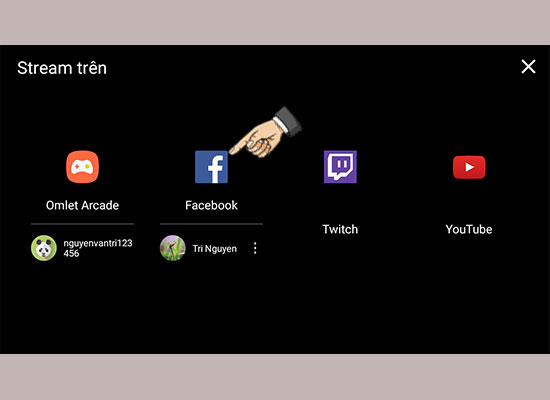 Bước 5: Chọn trang mà bạn muốn live stream.